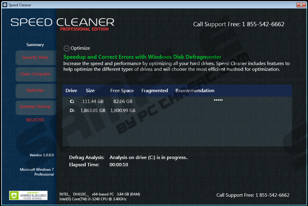 Speed CleanerSpeed Cleaner is a system optimization tool which is presented as a program that can remove computer infections and junk files, correct fragment errors, completely erase personal data, and also speed up the computer. The application is promoted at onebitit.co/speedcleaner and is compatible with several platforms, including personal computers, mobile phones, and tables. Speed Cleaner may seem a useful tool; however, the analysis of this application has revealed that it consumes a lot of resources of the computer, including high CPU and memory usage, which is likely to impact the speed of the computer. Speed Cleaner is categorized as a potentially unwanted program (PUP), and can be removed from the computer by SpyHunter, so, if you have Speed Cleaner on your computer, do not wait but remove the PUP right now. Speed Cleaner starts running once you log on to the computer. The user interface of the application does not enable computer users to disable the auto startup. If you want to disable the application, you have to do it using System Configuration Utility and its Startup tab, which you can access by entering msconfig into the Search/Run box that you can find in your Start menu. Visually, Speed Cleaner looks very simple and plain. It offers users options such as Security Risk, Clean Computer, Optimize, Speedup Startup. The application allows you to select programs that you want to start running when Windows starts and provides information on the most visited websites. After scanning the system, you will be asked whether you want to fix the errors detected, and if so, you are taken to the registration page. Speed Cleaner is not a free application, but we recommend that you think carefully whether you really need a program that makes your computer slower. There are many other ways to optimize the system, and you can do it yourself without spending a fortune. If you have no intention of using Speed Cleaner or use another system optimization program, remove the unwanted application right now. As has been already mentioned, Speed Cleaner can be removed from the computer by SpyHunter, and our team recommends using this program because it shields the system from numerous computer threats, including browser hijackers, adware programs, Trojan horses, rootkits, and many other threats. How to remove Speed CleanerWindows Vista and Windows 7