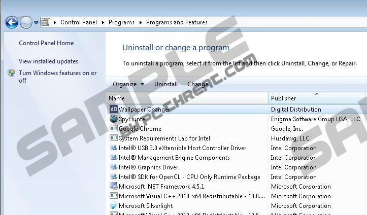 Wallpaper ChangerWallpaper Changer is a free desktop program which displays Facebook pictures as your computer wallpaper. The program is available at digital-distribution.co.uk, which features 5 similar programs in total. They include programs displaying Facebook photo albums, Twitter photos, anecdotes, football news, and information about the weather outside. As regards Wallpaper Changer, may seem to be an entertaining program; you can customize the display by choosing the style of the border and the background of the display, and the interval at which your photos will be replaced with new ones. However, many computer users complain about Wallpaper Changer and want to remove it from the computer soon after installing it. Moreover, Wallpaper Changer is categorized as a potentially unwanted program because it is distributed alongside other programs; fortunately, you can remove it from the computer using SpyHunter, which is a powerful spyware and malware prevention tool. The analysis of the case of Wallpaper Changer has shown that the software program is distributed by deceptive download clients used on unreliable websites. You may find Wallpaper Changer attached to the installer of some Flash Player, media player, or any other application. The components of installer are changed from time to time; hence, it is crucial to pay close attention to the installation process and read the information provided. The official website of Wallpaper Changer does not provide computer users with any license agreement related to the product promoted on the website. All that you can find is the terms of use and the policy privacy of the website. We recommend that you remove Wallpaper Changer from the computer because it can display third-party advertisements, which are not endorsed by the developer of the program. The content of the advertisements may not match your interests because online offers are usually selected randomly, without any pre-set order, unless some third-party is running an advertising campaign. In order to avoid unreliable websites, ignore Wallpaper Changer advertisements and remove the program from the computer. When it comes to removal, we recommend that you rely on a reputable spyware and malware removal program because your computer may contain some other unreliable programs. If you do not remember installing Wallpaper Changer, act right now to install our recommended computer security tool. Not only can it eliminate the so-called potentially unwanted program; it can fight off adware, browser hijackers, Trojan horses, fake anti-virus programs, and many other malicious programs aimed at impairing the performance of the computer and/or stealing your personal information. How to remove Wallpaper ChangerWindows 8