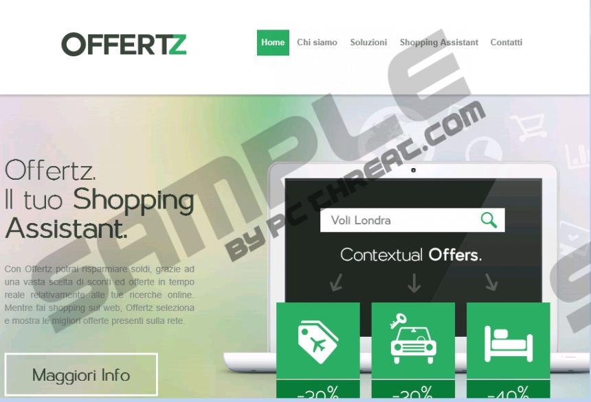 OffertzOffertz is a potentially unwanted application that mainly targets Italian speaking computer users. However, it does not mean that you are absolutely safe, and Offertz will not enter your computer. This application functions as an adware program, and it means that it may also be distributed by the same methods. Hence, it is very likely that Offertz will find its way into your computer even if you do not download it directly. It would be in your best interest to remove Offertz from the system because this program could inadvertently expose you to corrupted third-party websites. There are two main ways of distribution employed by this application. First, you can download Offertz at shopping.offertz.com. It is the main homepage for the program, and you can find the basic information provided there. It is in Italian, so it clearly means that the main target audience is Italian users. Another method of distribution is through bundled downloads. In such a case you most probably downloaded Offertz together with other unwanted adware applications. They are often distributed on third-party file hosting websites. If you need to download a new program, make sure you download it from the official website, otherwise a third-party installer may bring along a number of unnecessary and potentially malicious programs. However, even if you download Offertz from the official website, you need to remain attentive during the installation because the official installer comes with Findeer search engine. If you do fail to un-tick one option during the installation, your homepage will be changed to search.findeer.com. This modification affects Google Chrome, Mozilla Firefox and Internet Explorer web browsers. Findeer does not modify your default search engine, but it is not recommended to keep using this search provider. Findeer cannot provide you with reliable search results because the search engine is used to display commercial ads and discount offers. Technically, Offertz should provide you with relevant information on where to buy the cheapest goods, but it only displays ads for its partners, and it is not objective. What is more, Offertz may collect information on your web browsing habits in order to display customized commercial advertisements. It is obvious that pop-up ads are annoying, but they are also the main security concern when it comes to adware applications. Even if Offertz really intends to provide you with shopping information, it cannot guarantee that you will be redirected to safe and reliable websites. Therefore, if you want to avoid any potential computer security threats, you ought to remove Offertz right now. After you uninstall Offertz manually, make sure you scan the system with a reliable antispyware tool because there is a high chance that there are more unwanted programs on board. Do everything to protect the PC from harm. How to remove OffertzWindows 8