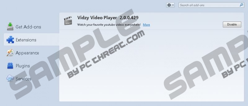 VidzyVidzy is quite a catchy name for a program that enables you to watch YouTube videos without actually visiting the website. It is actually a very good concept, but, alas, Vidzy has been classified as a potentially unwanted program that you ought to remove. The application would be useful if it worked, but it does not and it is not surprising when we know that it has been developed by an unreliable software developer. Furthermore, this program can collect information from you and might even show you commercial third-party ads. If you do not approve of that, then you should get rid of this application and be done with it. The way Vidzy ought to work is pretty simple. The user interface is conveniently located at the bottom of the browser window. It looks sort of like a banner, which is quite bulky, but can easily be retracted to the left of the window. At least for the time being the application does not work, which is a pity, since we could not check if this application is any good or not. But let us assume that it is good and that you can watch videos and listen to music without ever visiting Youtube.com. However, having a YouTube tab opened is not a huge problem for most, so its usefulness can be debated. In any case, the application’s website Vidzy.me states that this application is not spyware or adware and does not contain Trojans or display pop-ups. It is quite odd that its developers went out of their way to claim that, since reliable applications never do that. It is true that this application does not contain Trojans and pop-ups. However, the program’s privacy policy states that it might display third-party advertisements, since you use it for free. Vidzy is not exactly spyware, but it does collect personal information if you provide any when registering on its website. Non-personally identifiable information is automatically collected in order to improve the program and its services, which is fine. However, the information will also be shared with advertisers, which is definitely not a good thing. The final blow to Vidzy’s credibility is the fact that it has been developed by an unreliable software developer known as Bitcocktail Ltd. the cyber security industry regards this developer as unreliable, since it has released various bad tool bars and potentially unwanted programs in the past. For the full list of currently active applications, please refer to its website at Bitcocktail.com. Vidzy distributed using its aforementioned website Vidzy.me, but we have received unconfirmed reports that it might also be bundled with freeware and put up for download on websites, such as Softonic.com, Softpedia.com, and so on. All in all, you can use Vidzy if you insist, provided that it actually woks. However, adding this additional functionality to your browser does not really improve browsing experience, since having a Youtube.com tab open will do the job just as well and most likely even better. I you have decided to remove Vidzy, but do not know how, please see our manual removal guide instructions below. Remove Vidzy from your PC manuallyWindows 7 and Vista