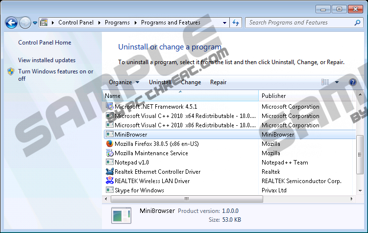 MiniBrowser CrawlerMiniBrowser Crawler is a potentially unwanted program (PUP) that is the worst of its kind because it virtually crawls onto your computer silently, i.e., without your knowledge. Its presence also signals that there may be malicious programs on-board. Now, that is really bad news, because right away your virtual security becomes much less protected and vulnerable to more attacks. This PUP is a totally useless piece of software that has no function or benefit for you at all. As a matter of fact, this application shows a couple of suspicious traits that should be more than enough for you to make up your mind and remove MiniBrowser Crawler from your PC. But let us tell you more about this uninvited “guest” so that you can make the right decision. The first doubt rises when you realize that this PUP does not even have an official website; you cannot download it as a standalone file. You cannot get any information about MiniBrowser Crawler, so why or how would you have it at all? We have found that this PUP travels with bundled malicious software installers. That is not a “nice company” to travel with and certainly not healthy for your computer. As a matter of fact, if you install such a bundle, this potentially unwanted program may be the least dangerous threat on your PC. To be honest, PUPs are mostly not dangerous and cannot be considered as direct threats to your operating system. However, MiniBrowser Crawler does not even have a user interface; it operates silently through a service in the background. When this PUP is installed, it makes changes to your system so that it can automatically start up with Windows. Why would an application do that if it seems not to do anything? Or does it? Well, what we have noticed is pretty worrisome. Once you launch your browser, this application starts to go through all the websites in your browsing history and programmatically clicks on every link, picture, and banner that can be found on those pages. Most probably, this is done in order to gather information about you, including your usernames -- and maybe even your passwords. This kind of behavior is rather suspicious, which is why we recommend that you delete MiniBrowser Crawler as soon as possible. Hopefully, you can see now that your computer is more secure if you eliminate MiniBrowser Crawler. If you intend to take care of this infection manually, find the application in the list of installed programs in Control Panel. Then, simply uninstall it; it is as simple as that. But, if you want to be more effective and eliminate all the possible threats, we advise you to download and install a powerful antimalware program. An automated security tool can detect and remove all known infections and protect your Windows operating system from future attacks. However, you can also do some protection yourself if you have your own code of safe browsing and stick to it. Avoiding questionable websites and not clicking on third-party ads are two simple rules that can help you keep your computer clean. Remove MiniBrowser Crawler from WindowsWindows XP