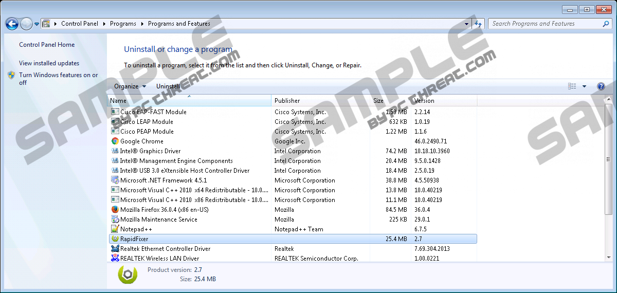 RapidFixerRapidFixer is yet another computer optimization program that has been classified as potentially unwanted. This program is not malicious, but rather next to useless as its so-called optimization does not actually impact a computer’s performance. Therefore, we suggest removing RapidFixer from your computer. This program offers a free trail, but it is very likely that it will demand that you purchase the full version right after the first scan. There are dozens of programs, such as this one, and their only purpose is to make money for their creators. We are of the opinion that you will be throwing your money away if you purchase it. But if you are still not convinced, please read this short article and come to your own conclusions. RapidFixer was created by a mysterious software developer most likely located somewhere in Poland. The name of the developer is not provided anywhere and this just goes to show how unreliable this program truly is. This optimizer’s developers have set this program up with its very own dedicated distribution website located at Rapidfixer.com. However, it must be said that this program is bundled with other programs by default. So by installing this optimizer you may also get other potentially unwanted programs and adware-type programs as well. Furthermore, we have found that RapidFixer is also being bundled with other programs that are featured on third-party websites. This program’s developers make outrageous claims that RapidFixer is the best do-it-all maintenance program that is supposed to keep your computer in good working order. It is claimed that it will delete junk files and resolve Windows registry issues. This function is quite common among similar PC optimization software that has been classified as potentially unwanted. Furthermore, it is claimed that RapidFixer will protect your privacy by removing all traces of your activity on your computer. Such obscure claims obviously do not really tell anything. So we took the time to test this program and here is what we have found. It must be said that more often than not this program does not even work. If it does work, then it will scan your computer for junk files and registry errors. As a free trail program it may fix those issues, but it is also likely that it will demand that you purchase the full version in order to clean the PC. The bottom line is that this program does not really improve the performance of the computer, so there is no reason to get it. So if you have RapidFixer installed on your computer and you are thinking of purchasing the full version, then you consider the fact that it is unreliable as it might not even work. And, if it does work, the functions it performs do not impact your computer’s performance. Its developers use deceptive marketing tactics to persuade you to get this seemingly light-weight easy to use PC optimization program. So we suggest removing RapidFixer from your computer altogether. Note that its accompanying bundled programs have to be uninstalled separately. RapidFixer removal instructionsWindows 10