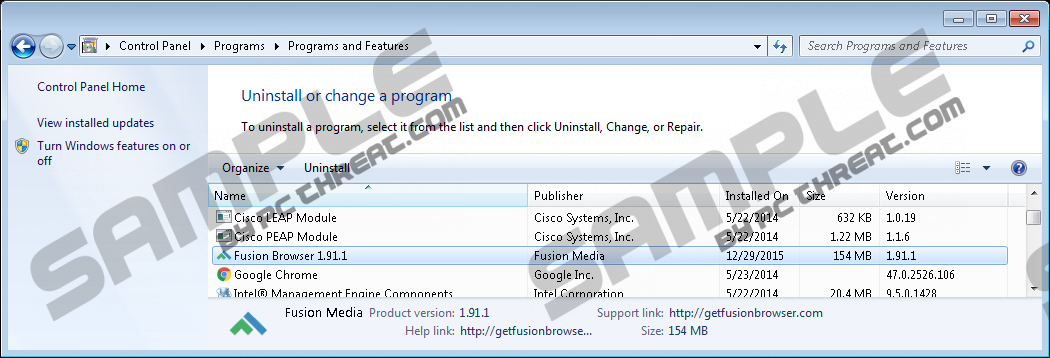 Fusion BrowserFusion Browser is a questionable desktop application that was built on the chromium engine. Although this program cannot cause your computer direct harm, it might still present you with indirect risks. Therefore, we have categorized it as a potentially unwanted program (PUP). It is possible that you have installed this PUP knowingly and officially, but, unfortunately, it is also possible that it has sneaked onto your computer in a bundled version potentially along with malicious software installers. This is really bad news because this PUP will be the least of your problems in that case. We recommend that you remove Fusion Browser if you want to keep your PC clean from infections. Let us tell you in more detail why we think that this application may hold system security-related risks for your operating system and how you can protect your computer from these. This application is actually a web browser that you can run from your desktop. It promises you “the most convenient, clutter-free browsing experience”, simplicity, and a “stylish and intuitive interface.” This browser comes with a number of “built-in” extensions, including integrated Facebook functionality, streaming music app, free VPN, local weather, and a convenient deal finder. We have found that Fusion Browser is very similar to WebDiscover Browser. This browser application displays a search bar at the top of the screen, which we do not advise you to use. The reason is that you may get unreliable search results, if at all. The truth is that your search query is redirected to an Israeli search engine, trovi.com and then, to a possibly manipulated Bing search results page. What makes it even more suspicious is that if you check this trovi.com search page, instead of a search box, now you will find a warning message saying: “This search page has been blocked due to a violation of our terms of use.” But somehow the informational page is still up and running at info.trovi.com, so you can see that this search engine claims to be in “strategic partnerships with Google, Yahoo!, and Bing” so that you can find quickly and easily what you are looking for. However, the page is blocked now for some reasons; and most probably not because it was such a reliable tool. Apart from the possibly manipulated search results – if you get any at all now – which can contain potentially unsafe third-party ads and sponsored links, you can also encounter third-party ads through the software itself. Here is what the EULA discloses about this: Some components of the Software may be supported by advertising revenue and may display advertisements and promotions. These advertisements may be targeted to the content of information stored by or through the Software, queries made through the Software or other information. You need to understand that third-party ads can never be fully trusted since nobody reviews and controls these third parties. This means that there is no guarantee whatsoever that you will end up on a legitimate website if you click on them. It is a possibility – no matter how slight that chance may be – that you land on a malicious website. Most online scams and frauds start with a single click on the wrong link or advertisement. Therefore, we advise you to delete Fusion Browser if you want to avoid the experience of being scammed. Mainly there are two ways this infection can enter your computer. First, you can download it officially from its website at getfusionbrowser.com. However, the installer may get blocked by your browser, once it finishes downloading, as being suspicious or possibly containing a threat. This is a rather suspicious behavior from a software installer and clearly shows that you need to be careful with this program. But, unfortunately, we have also found bundled versions of this PUP, which contained some extra extensions, including GeniusBox and RightCoupon, both of which can show third-party ads. If you feel now that you may be better off without this potentially unreliable application, it is time for you to learn how you can remove Fusion Browser from your computer. In fact, it is quite a simple task, which can be performed even by an inexperienced computer user. You need to locate the uninstaller of this PUP in the installed programs list in Control Panel, and run it. Please follow our instructions below if you have never uninstalled an application. Please keep in mind that there is a possibility that there are other malware infections present on your system as well. You can try to identify them manually by opening and checking the installed programs list in Control Panel, then, the extension lists in your browsers. If you find any suspicious application or extension, you can use our search box at the top to find it in our extensive database. If we have an article on the particular infection, you will also have a solution to eliminate it. However, you should know that this way you can only find the less dangerous malware threats only, such as adware programs, browser hijackers, bad toolbars, and PUPs; but what about backdoors, keyloggers, rootkits, Trojans, and the like? These are rather dangerous infections that can cripple your operating system and destroy your files, not to mention that they can even steal sensitive information from your hard drive, too. Therefore, we advise you to consider installing a decent antimalware program that can effectively protect your computer from any kind of malware attacks. For perfect and full-time protection, do not forget to keep this security tool up-to-date. As a matter of fact, you should keep all your software and drivers also updated regularly to leave fewer doors open for cyber criminals to access your computer. How to remove Fusion Browser from WindowsWindows 8/Windows 8.1/Windows 10