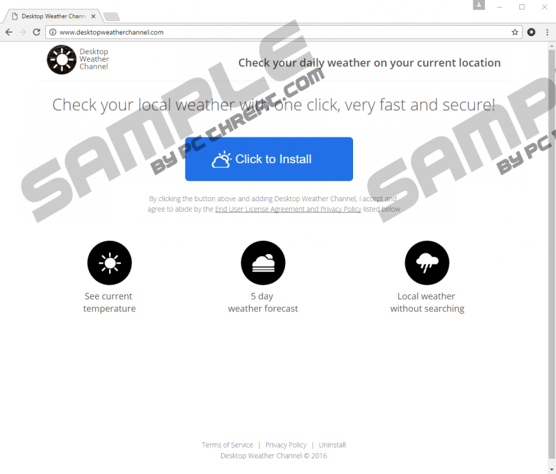 Desktop Weather ChannelDesktop Weather Channel is an application that promises to enable users to check their local weather forecasts “with one click, very fast and secure.” This application shows a 5-day weather forecast for a selected area in a separate window. This window can be opened by clicking on a button located in the upper-right corner of Google Chrome. Since Desktop Weather Channel is a Google Chrome browser extension and does not work on other browsers, you will not see this button at the top of Mozilla Firefox, Internet Explorer or a different web browser. Evidently, this button installed on a Google Chrome browser enables users to access the weather forecast very quickly and, as a consequence, save some time. This weather application works well, so it is not surprising that so many users find it beneficial and make a decision to keep it installed on their computers. Despite the fact that this program acts the way it should, it cannot be trusted 100%, according to specialists. They do not say that it is going to act like existing serious computer infections, i.e. malware; however, it has been found that it might perform one undesirable activity. Read this report and find out more about this program. Since there are so many users’ complaints on the web that Desktop Weather Channel shows advertisements, specialists at pcthreat.com have decided to conduct thorough research in order to find out more about it. They have not noticed any commercial advertisements, but, judging from the piece of information found in the Privacy Policy document, this piece of software is capable of doing that. The following sentence has been found in this document: “We may allow third parties to serve advertisements.” Evidently, this potentially unwanted application might provide users with third-party advertisements. If you start seeing them too and you are sure that they are shown by Desktop Weather Channel, you should ignore them. Since this program is not very bad, malicious websites should not be advertised, but it might be true that some of these websites you will be redirected to after clicking on a commercial shown on your screen might try to obtain various details, including IP address, browser information, and other details from you. Actually, it seems that Desktop Weather Channel itself might also collect information about users too, as it is said in the Privacy Policy. Fortunately, it does not gather personal information. To be able to work properly on computers, Desktop Weather Channel makes several modifications. First of all, it creates a folder for its extension in %LOCALAPPDATA%\Google\Chrome\User Data\Default\Extensions\pkpnnpepdfaiilcelopnjonhhgknpfon and %UserProfile%\Local Settings\Application Data\Google\Chrome\User Data\Default\pkpnnpepdfaiilcelopnjonhhgknpfon. On top of that, it creates two new registry keys in the system registry. One of these registry keys is responsible for the uninstaller in Control Panel, whereas the other is associated with the Google Chrome browser extension added: HKEY_LOCAL_MACHINE\SOFTWARE\Wow6432Node\Google\Chrome\Extensions\pkpnnpepdfaiilcelopnjonhhgknpfon. Even though Desktop Weather Channel works beneficially, i.e. shows the local weather forecast, it still cannot be trusted because of the way it is distributed. Actually, it has fallen into the category of potentially unwanted programs mainly because of that. Researchers say that this program, even though it can be downloaded from its official source desktopweatherchannel.com, is capable of slithering onto computers bundled with free applications. It comes as an additional offer; however, users usually do not see that because they are not very attentive and thus cannot prevent unwanted software from entering their computers. In fact, users are not always informed about the installation of additional software, so it is not surprising that they know nothing about that. Luckily, there is a way to prevent untrustworthy applications from slithering onto the computer. All you need to do is to install a reputable security application on your system. The untrustworthy software will not bother you as long as this tool is kept enabled. You can deactivate Desktop Weather Channel only by removing the browser extension through the Add-ons Manager on Google Chrome. This can be done through Control Panel, so the removal process should not be problematic. If you still face difficulties during the manual removal process, consult our manual removal instructions (they are placed right below this paragraph). If they do not help you much either, leave this job for an automatic malware remover, e.g. SpyHunter. Your system will be cleaned within seconds. How to delete Desktop Weather Channel manuallyWindows XP