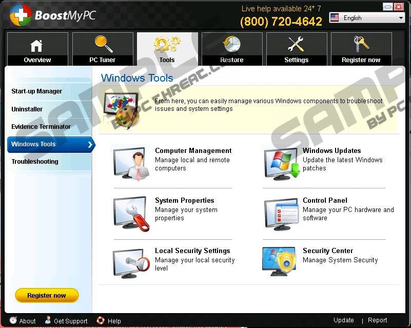 BoostMyPCIf you are looking for a program to make your PC work in a more efficient way, you might be drawn to an application that goes by the name of BoostMyPC. That is not surprising because this program's creators advertise it as a tool that will optimize your system for the best possible performance in the quickest way. While all of that sounds great, you must know that our research team has classified this application as one more potentially unwanted program that you should actually avoid. Such classification has been made after this application's detailed analysis, which revealed questionable and otherwise suspicious functionality. Our malware experts also discovered that in some instances this program might be the primary reason other dubious application could already be active on your PC. Find out more about BoostMyPC by reading this article. To delete it without encountering any major problems be sure to follow the detailed removal instructions that we present below. BoostMyPC functions like a lot of other questionable optimization tools. Once it gains full access to your operating system, it will automatically start a full-system scan to determine the issues on your system that are responsible for your computer's slow performance. The scan does not take longer than few minutes. Once it is done, you will get an audio warning telling that there are errors on your PC and they must be fixed. The program also provides you with a gauge that indicates, which shows the status of your computer performance. The error list is extensive, to say the least. While the average user might not pay full attention to it, our researchers did and found out that some issues on the list a rather questionable. That is so because this potentially unwanted program include a lot of temporary files and inactive registry entries as errors, while in reality, they do not have a profound effect on the way your computer functions. Such extensive catalog of errors and the audio warning are likely used to scare users into believing that their PC desperately needs help even though the reality might be different. On top of that, if you try to fix the alleged issues you are asked to purchase the full version of this dubious application. We advise you to avoid that because there are better optimization tools, which could even be free of charge compared to the one in question. The best thing that should be done about BoostMyPC is its complete removal. To do that, make sure to use a detailed removal guide below. We highly advise users that already have BoostMyPC up and running on their PC to check their entire operating system for other questionable software. This is important because this suspicious program is known to be distributed via software bundles, which are infamous for being the primary source of unwanted and otherwise dubious programs. If you wish to maintain a fully secure and clean operating system at all times, you must take a few simple steps. First and foremost, make sure to install a licensed antimalware tool if you do not have one already. Such a tool is the most important part of your virtual security as it can detect and terminate any virtual threat automatically. In addition to such a tool, safe browsing habits will help you minimize the risk of coming across programs such as BoostMyPC. Make sure to avoid all unauthorized third-party websites, which are infamous for hosting bundled installers. Also, you need to pay your full attention to every installation procedure as you might be presented with a chance to cancel the installation of some undesirable application. These seemingly simple precautionary steps along with a professional antimalware tool will make your operating system virtually unbreakable. To remove BoostMyPC once and for all, make sure to follow the detailed instructions that we present below. Once you are done with them, we highly advise you to perform an in-depth analysis of your entire operating system for anything linked to the potentially unwanted program. This way you will be sure that every single bit of BoostMyPC has been removed from your operating system. It is important to get rid of this application entirely since its traces could act in an invasive manner. For example, they might be used to restore this undesirable application without your knowledge. In other situation, those same traces could be more than enough for your PC to continue its questionable functionality. If you believe that manual analysis for leftovers is too challenging, make sure to delete BoostMyPC with the help of a reliable antimalware tool. How to delete BoostMyPC from your computerWindows 7