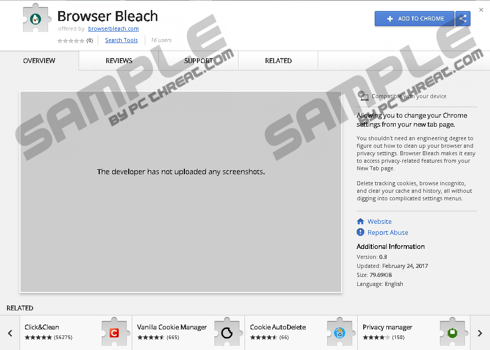 Browser BleachBrowser Bleach is a browser extension that allows you to make changes on the Chrome browser without having to navigate to the settings manager. The extension alters new tabs so that the features it offers are just a click away. Browser Bleach enables you to clean tracking cookies, open a new browser window in incognito, clear the browser's cache, and delete browsing history. If you do not find this type of enhancement appealing, do not hesitate to remove Browser Bleach. The extension Brower Bleach is categorized as a potentially unwanted program (PUP), and soon you will find out why it is worth paying more attention to software installation. The Browser Bleach extension may not arouse any suspicion if you only check its official website browserbleach.com or the Chrome Web Store, where this tool is presented as a very useful and handy application. However, these two sources do not prove that the application will not cause any issues. Before installing a program, it is worth reading some reviews or checking the rating of the selected program to prevent undesirable consequences. For example, the Browser Bleach browser extension collects some information about users. This is clearly stated in the privacy policy, which can be accessed on the official website. According to the privacy policy, Browser Bleach is not interested in determining your identify, but it focuses on your interests and browsing patterns. Your search terms, and URLs typed in or clicked on, are recorded by Browser Bleach and may be shared with third-parties, which may use this information for advertising and service enhancement. More specifically, every search query is redirected through browserbleach.com, and many users may not notice this because this redirection happens before search results are loaded. If you browse your personal identifiable information, all that data is recorded and may be used in different ways by the parties the data is shared with. Additionally, your IP address, the version of the browser, geographical location, and other Internet usage-related details are also recorded by Browser Bleach. Such information is usually used to produce statistics that would help developers understand what type of people are interested in a particular browser extension and what their browsing behavior is. Unfortunately, virtually all browser extensions work in more or less the same way, so you should choose extensions for your Google Chrome carefully if you do not want to be analysed by some unknown and dubious third parties. Every new tab of Browser Bleach is powered by the Yahoo search. If you want to use this search engine as your default search tool, remove Browser Bleach and set the engine as the default one. There is no need to have browserbreach.com between you and the Yahoo engine, the results of which might be sligtly affected by Browser Bleach. The longer you keep Browser Blearch on the browser, the more information about you is collected by this service. Moreover, if the extension has just been installed without your approval, that suggests that this extension might have been attached to the program you have installed. Freeware is distributed in such a way so that various programs reach as many PC users as possible. Because of this distribution method, you should choose software wisely and only from trusted websites. Bear in mind that the Chrome Web Store is not the store that offers you browser apps only of the best quality. This freeware website has many free applications, some of which are regarded as PUPs. You install applications at your own risks, so it is worth having some assistance in identifying so-called potentially unwanted programs. A reputable malware and spyware removal program running on your PC will surely help you save your nerves and time. Consider implementing one so that you can connect to the Internet without the fear of getting the PC infected. Below you will find a removal guide that should help you get rid of Browser Bleach. Please note that removing the extension through the extension manager may be insufficient; hence, some additional steps might need to be taken. If you do not want to remove Browser Bleach yourself, get a program that will do it for you in no time. How to remove Browser Bleach