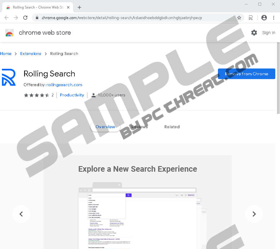 Rolling SearchRolling Search is a Google Chrome extension that might change a browser’s default search engine with a search tool called feed.rollingsearch.com. This search website could take you to a modified Yahoo search engine. You should know that even if the results are displayed by Yahoo, they might still be influenced by this browser extension. In other words, the results you might get could be different from what you would see if you searched the Internet with the original Yahoo search website. If you need more details about this application, you should take a look at the rest of this article. Also, you can find our deletion steps available below the text that show how to remove Rolling Search manually if you decide that you do not want to it after all. It is important to know it from the start that the extension was classified as a potentially unwanted program. This category is given to applications that can have undesirable working manner. In other words, such applications might not be harmful, but they could seem to be annoying. Consequently, some users may choose to delete the even though they install them themselves. Usually, potentially unwanted programs are spread through their official websites, for example, Rolling Search is offered on a site called install.rollingsearch.com, But they can also be distributed through various file-sharing web pages, redirects, and pop-up advertisements. Therefore, recommend making sure that you download applications only from reliable sources if you want to keep away from potentially unwanted programs and tools like them. Also, it would be wise to have a legitimate and antimalware tool that could keep your system clean for you. Next, we should talk about what happens when Rolling Search enters a system. As mentioned earlier it works only on Google Chrome browsers and it affects them by changing their default search settings. This is one of the possibly unwanted qualities that attributed to the application being classified as a potentially unwanted program. As you seem the extension’s presented search engine could redirect to a modified Yahoo search website that could show results injected with third-party advertisements. Such content could be both irritating and unreliable, which is why it might be a good idea to avoid it if you have any doubts about it. Moreover, users interested in Rolling Search should be aware that the application may need a permission to read their browsing history. This is another reason why the extension falls under the classification of potentially unwanted programs. Browsing history could contain various details that users might think to be private, for example, addresses of their visited websites, their clicked advertisements, or search keyboards. Thus, they may not want any tools to gather such information. According to the potentially unwanted program’s Privacy Policy, the extension could also share user data with third parties. Since the mentioned document also says that collected data could be used to serve personalized content, we suspect that if the application displays any third-party ads, they might be targeted. Naturally if you are not a fan of tailored ads, you may have to decide if you would still want this extension even if you know that it could show targeted ads. If you decide that the tool is not worth it, you could erase Rolling Search from your browser. Users who want to get rid of the discussed extension have a couple of options. Firstly, users could get a reliable antimalware tool and perform a full system scan, during which, the potentially unwanted program should be detected. After the scan, you should be able to remove Rolling Search by clicking your chosen tool’s provided deletion button. Secondly, users who prefer dealing with unwanted programs manually, could use our instructions located below this paragraph that explain how to remove Rolling Search via your browser’s extensions manager. If you need more help or have any questions, do not hesitate to contact us by leaving a message in the comments section. Eliminate Rolling Search